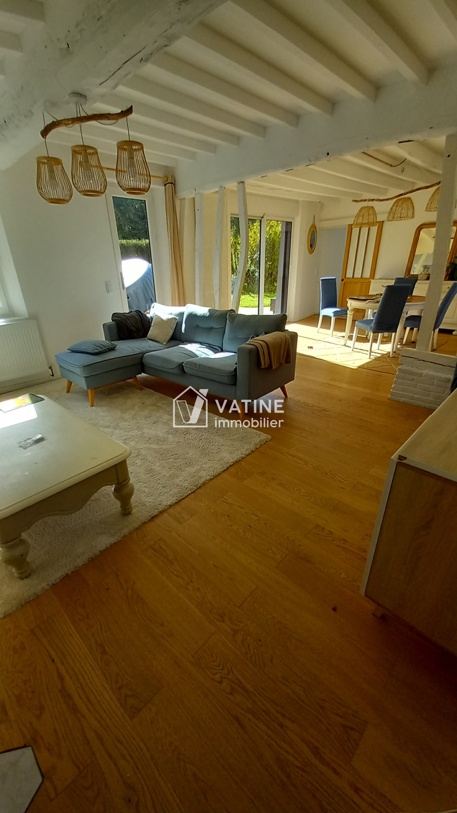 Axe Yvetot / Yerville, à 10 minutes de la gare SNCF et 20 minutes de Veules-les-Roses : charmante maison normande sur environ 1 500 m² de jardin paysagé, comprenant au rez-de-chaussée un vaste et lumineux séjour/salon avec cheminée et poêle à bois, une cuisine aménagée et équipée, une grande buanderie/cellier/arrière-cuisine, une chaufferie, deux chambres, une salle de bains avec baignoire et douche, et des WC indépendants.