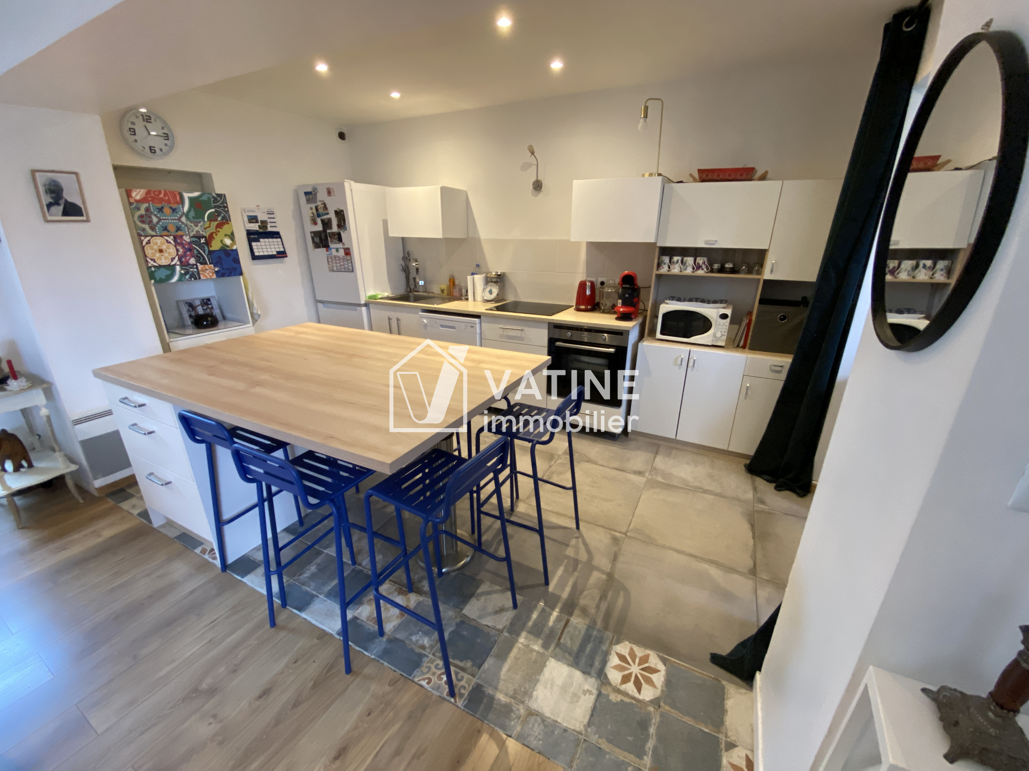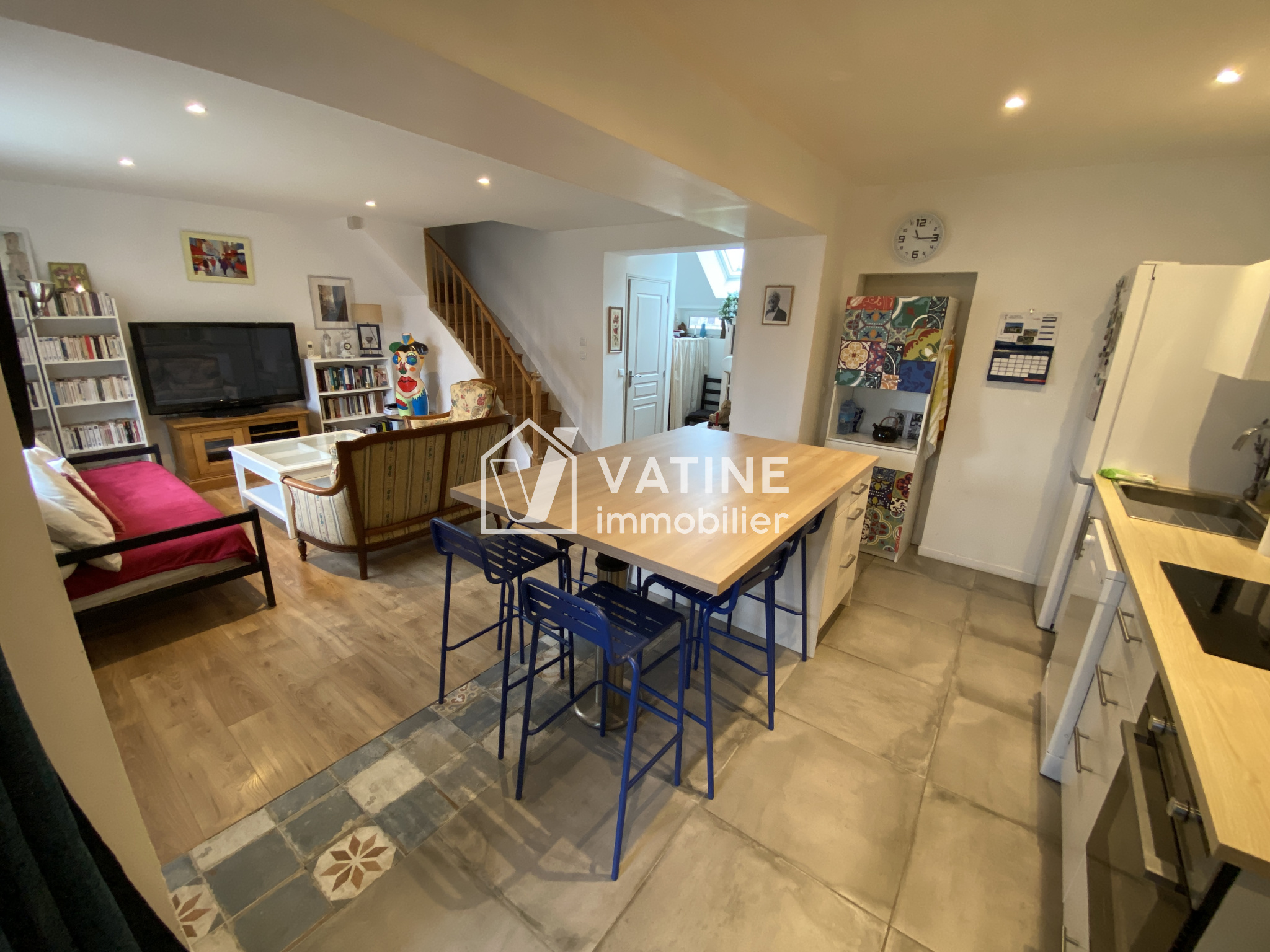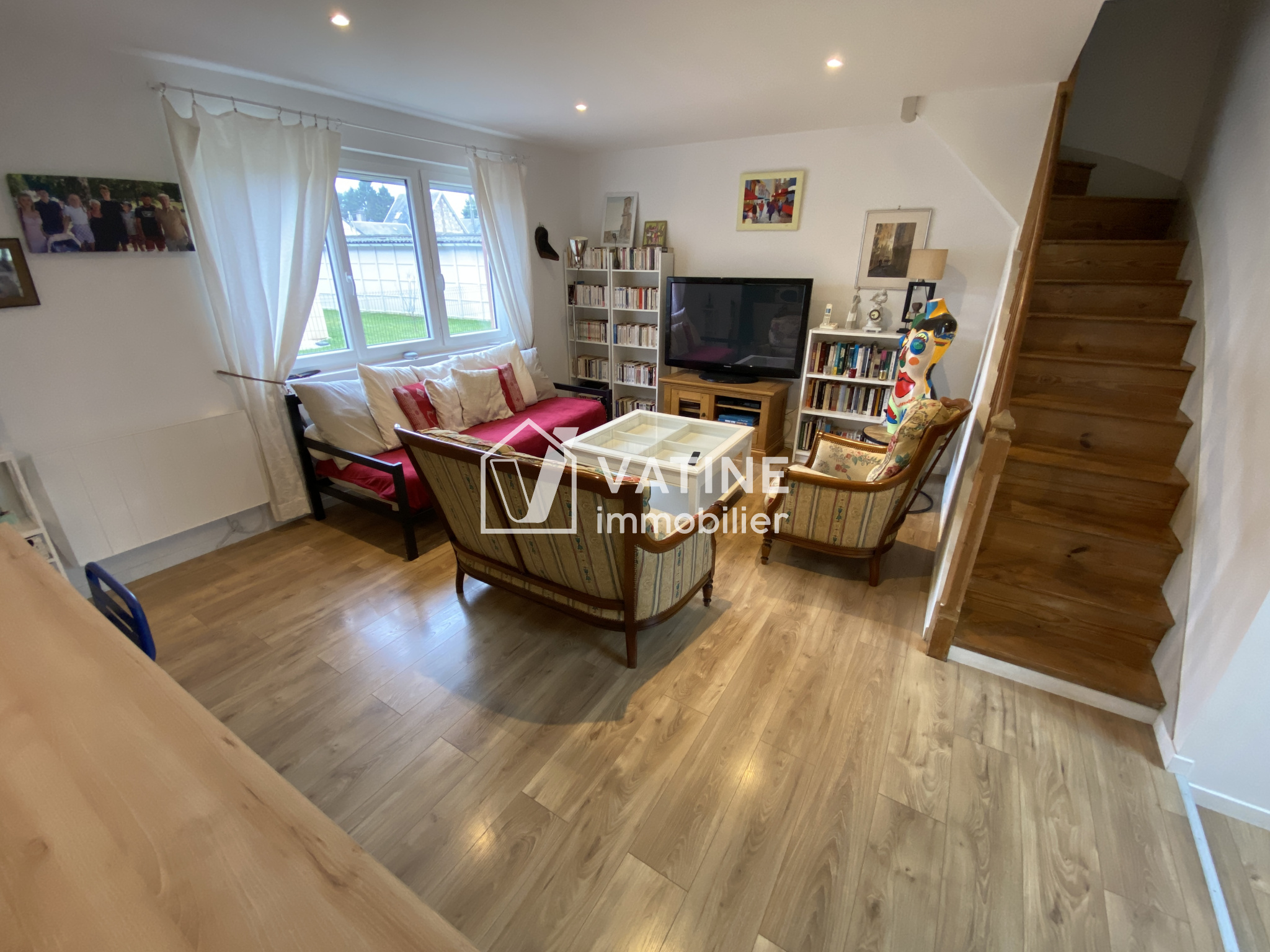 YVETOT CENTRE-VILLE A PIEDS / Au calme / Nouvelle Exclusivité VATINE Immobilier / Maison en parfait état sur environ 224 m² de jardin clos, rénovation complète récente, mitoyenne d'un coté, comprenant au rez de chaussée : entrée, cuisine aménagée et équipée ouverte sur un séjour/salon très lumineux, bureau, salle de douche avec douche et vasque, WC. A l'étage vous trouverez un palier desservant deux belles chambres .