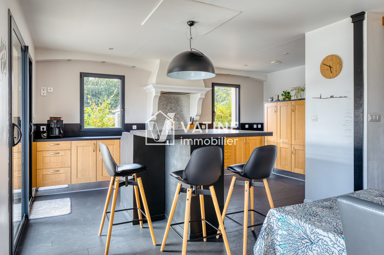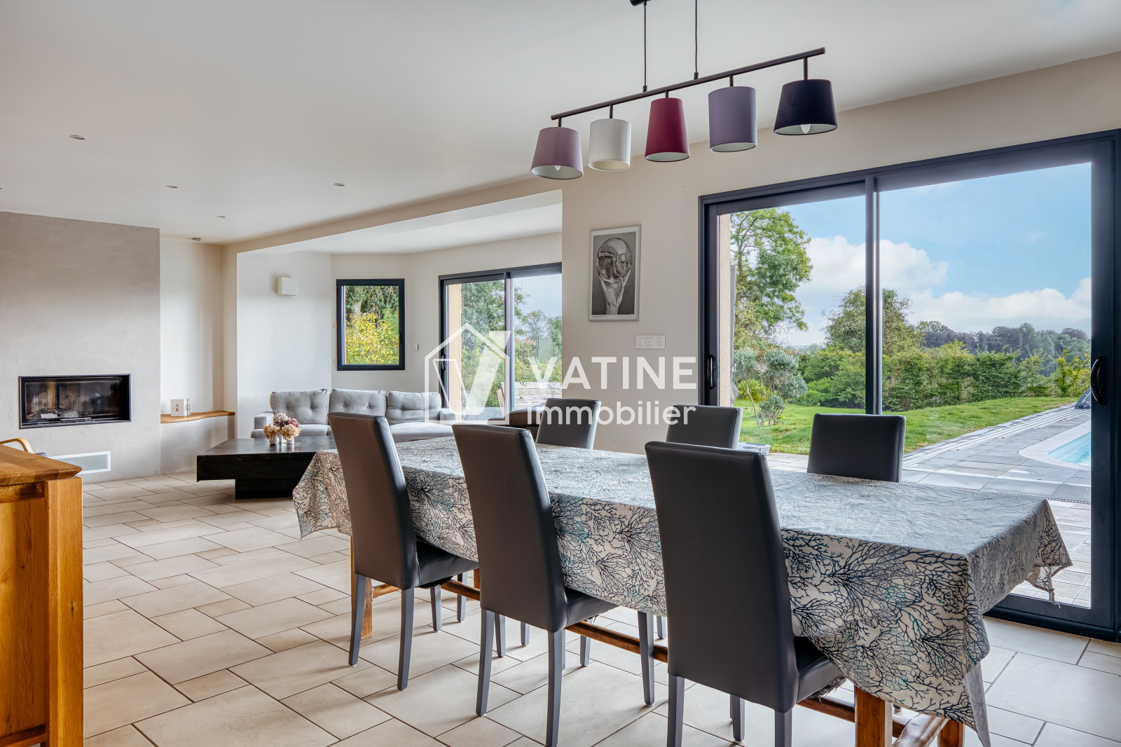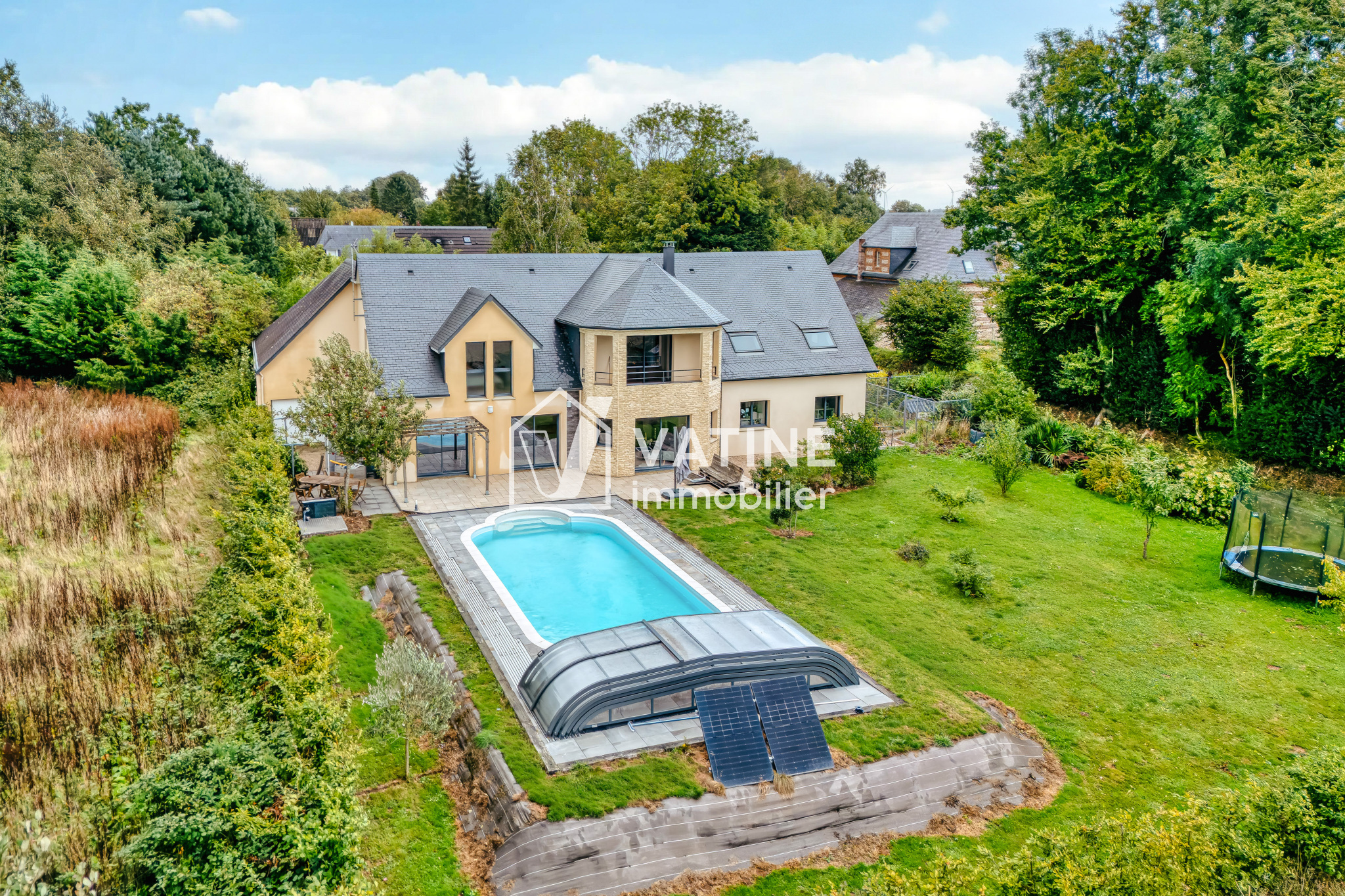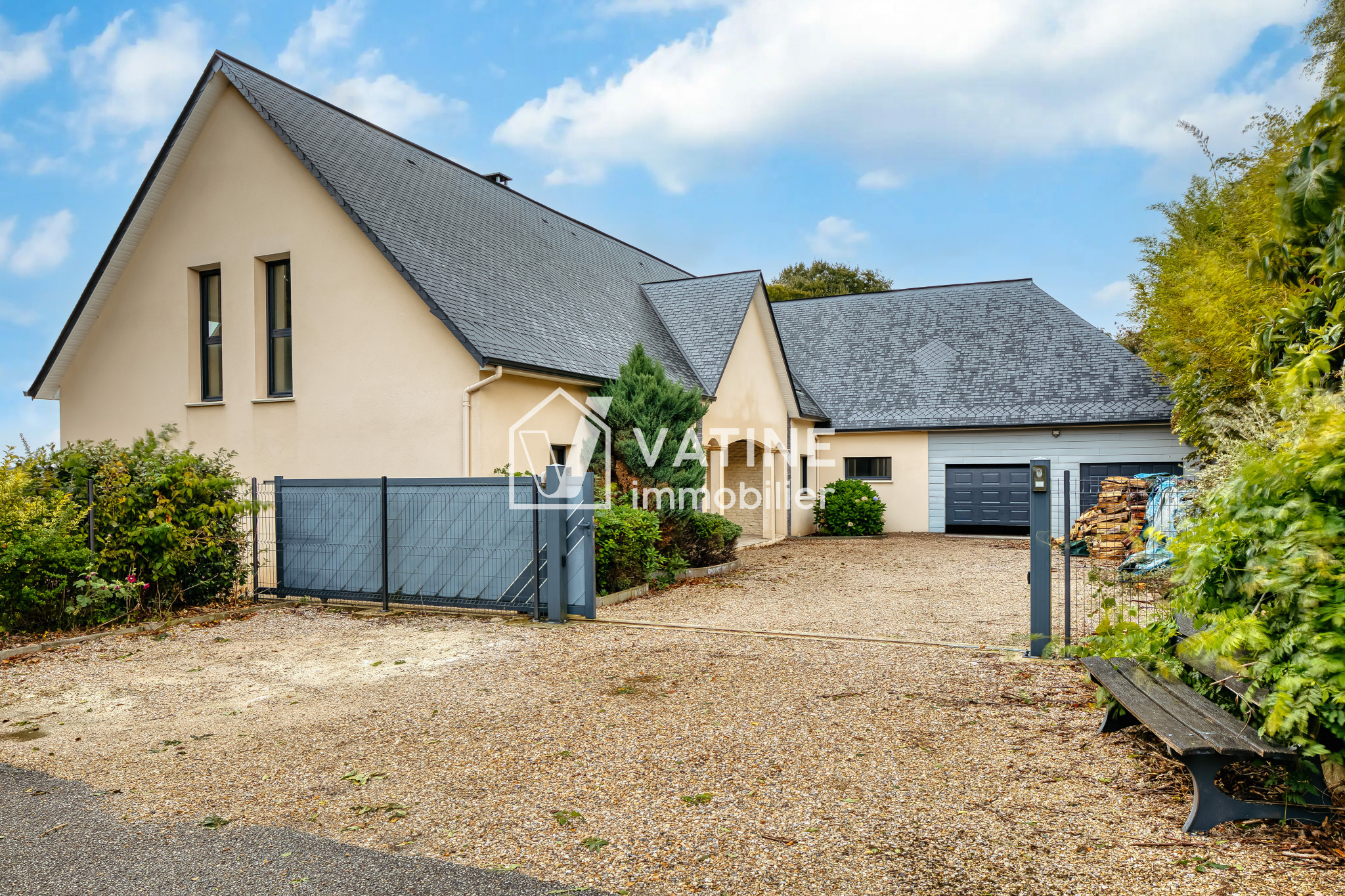 SUPERBE NOUVEAUTE EN EXCLUSIVITE dans votre agence VATINE Immobilier, 10 minutes YVETOT, 20 minutes des premières plages, secteur astreinte PALUEL, très bel environnement calme et agréable, charmante et élégante construction contemporaine de 2012 sur environ 1500 m² de jardin clos et arboré, comprenant au rez de chaussée : belle entrée avec dressings, 3 chambres, salle de bains avec bain et douche, WC avec lave mains, cuisine américaine aménagée et équipée donnant sur un vaste et lumineux séjour/salon avec insert bois, deuxième salon / pièce TV, cellier / buanderie, atelier, grand garage d'environ 60 m² avec doubles portes motorisées, grenier. A l'étage vous découvrirez un grand palier / salle de jeux avec rangements qui donne accès à un balcon, 3 chambres spacieuses dont une avec dressing, autre dressing / rangements, salle de bains avec bain, douche et WC.
