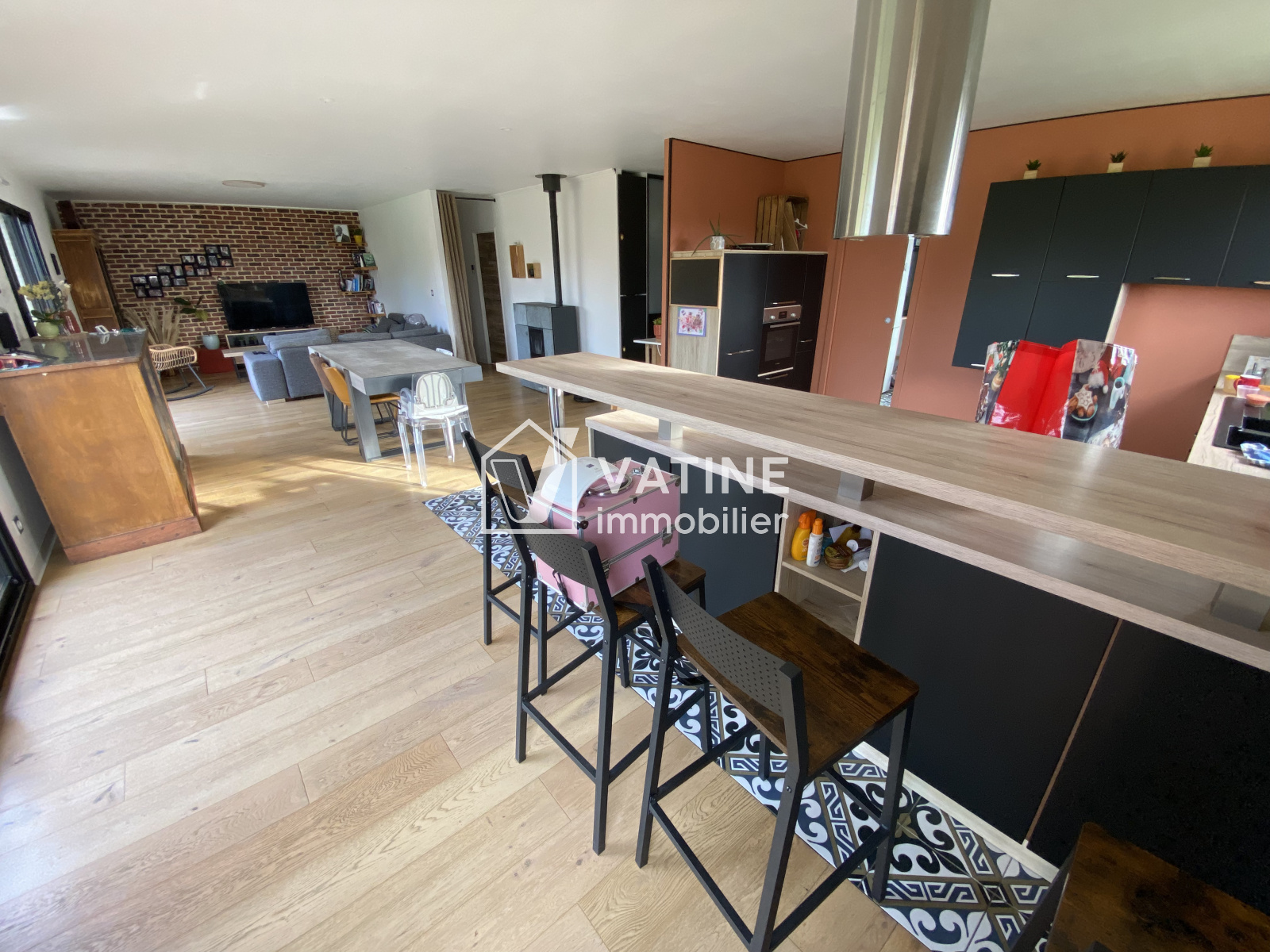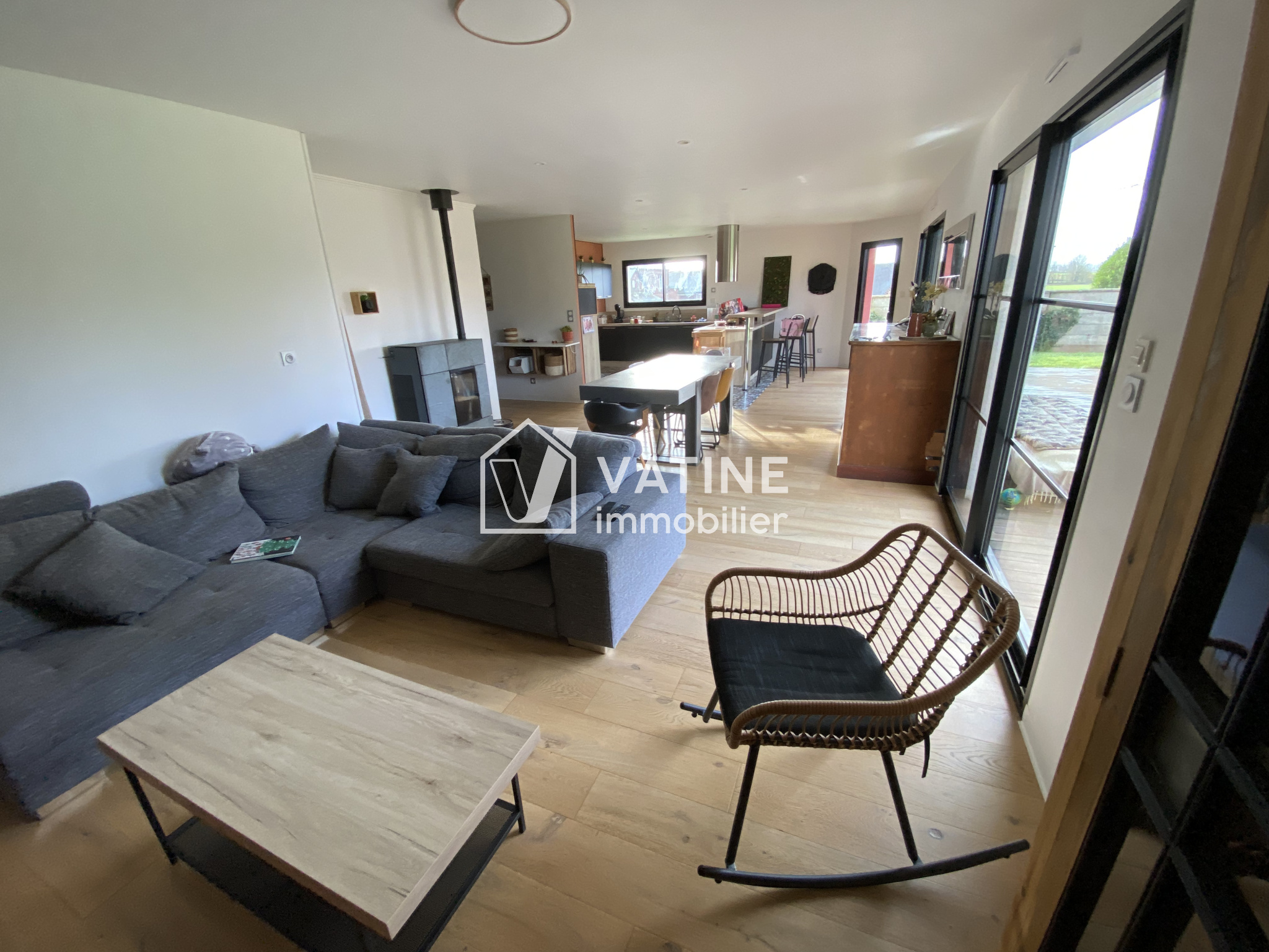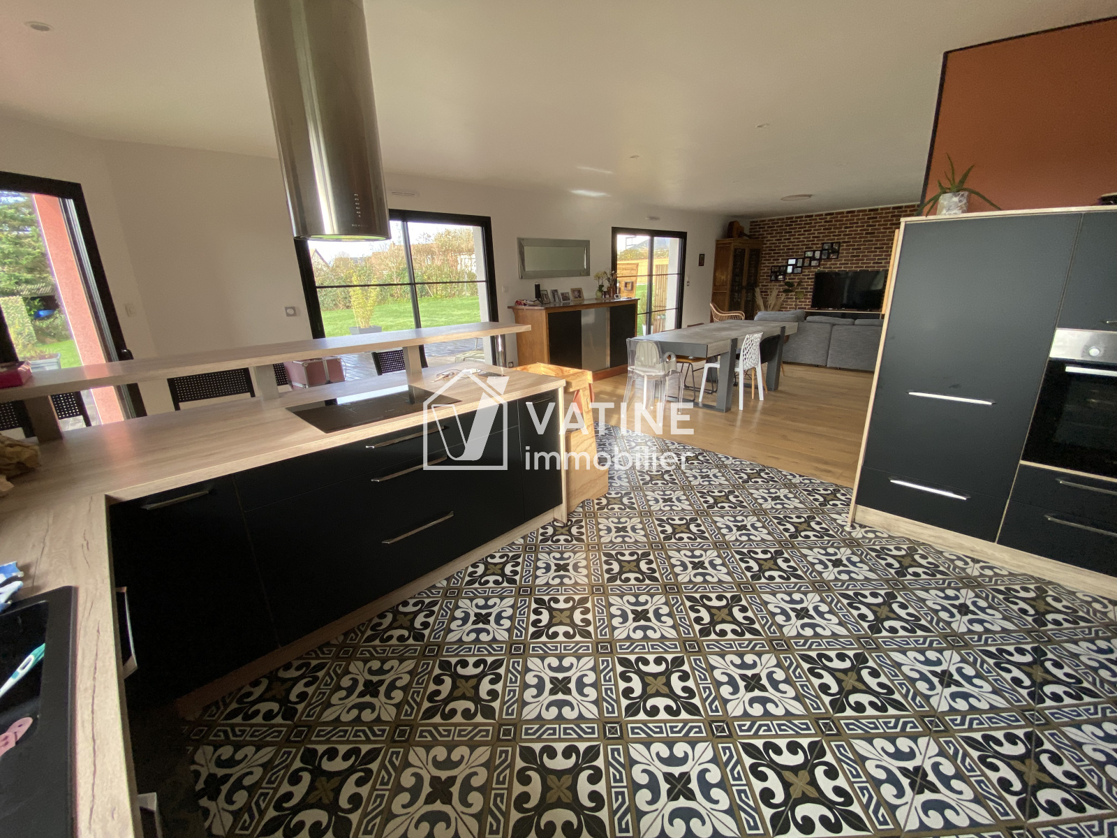 Nouvelle Exclusivité dans votre Agence VATINE Immobilier / Bien rare sur le marché / MOINS DE DIX MINUTES YVETOT CENTRE / Axe YVETOT - YERVILLE. Très beau contemporain de 2018 entièrement de plain pied élevé sur vide sanitaire complet comprenant entrée avec dressing, spacieuse cuisine aménagée et équipée donnant sur un vaste et lumineux séjour/salon, quatre chambres dont une suite parentale avec dressing et sa salle de douche, salle de bains, buanderie/arrière cuisine, WC.