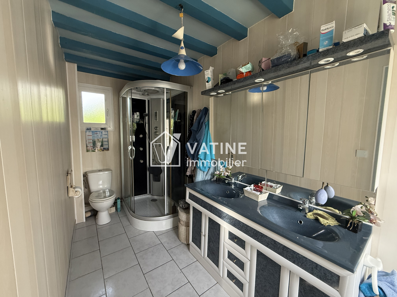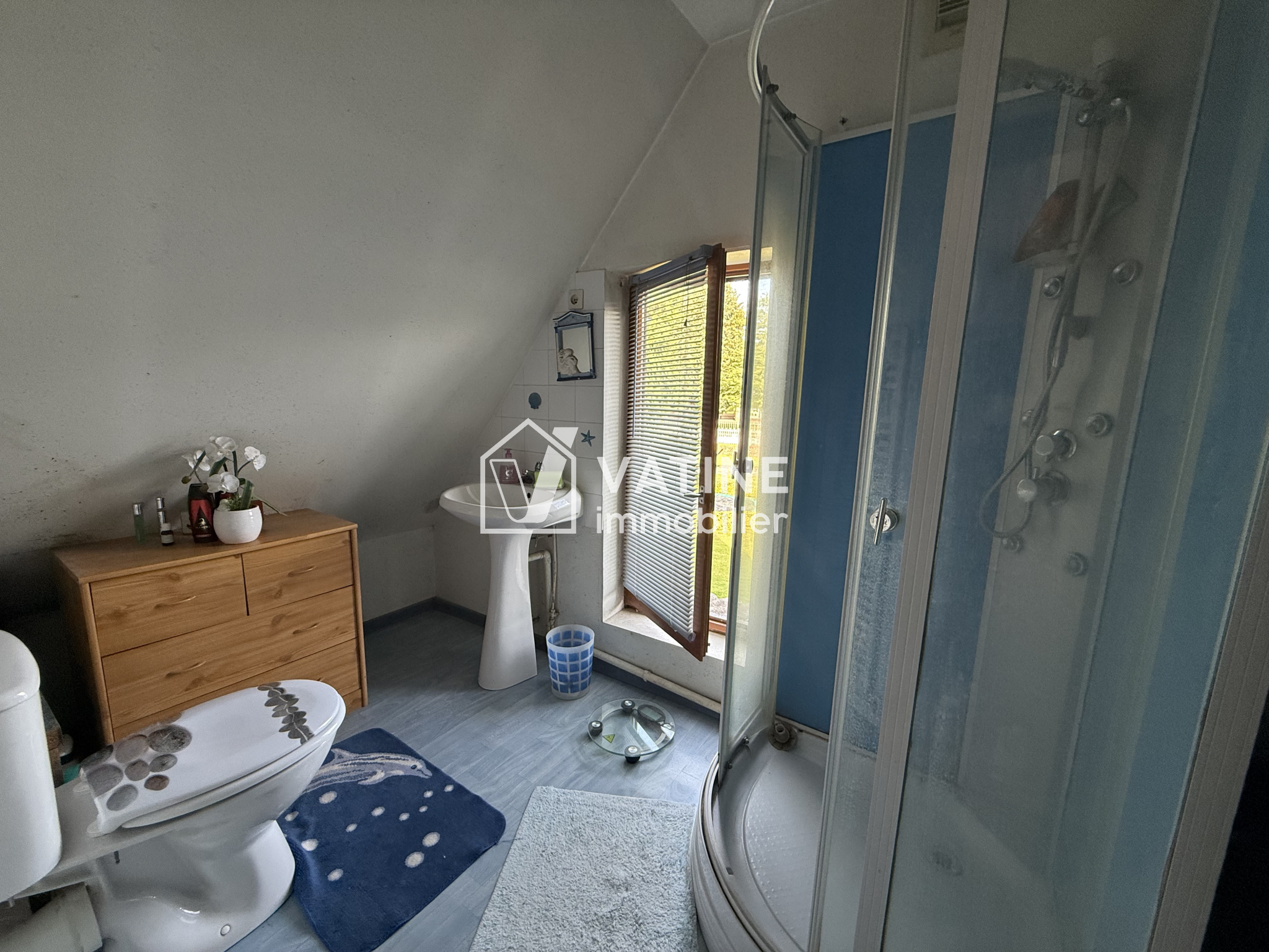 La maison d'environ 90m2 habitables vous offre: une cuisine aménagée, une salle à manger (possibilité de créer une 3ème chambre à la place), une belle véranda avec vue sur le jardin et la piscine, salle de douche et WC. A l'étage: palier, chambre, chambre avec salle de douche et WC. Cellier-buanderie.