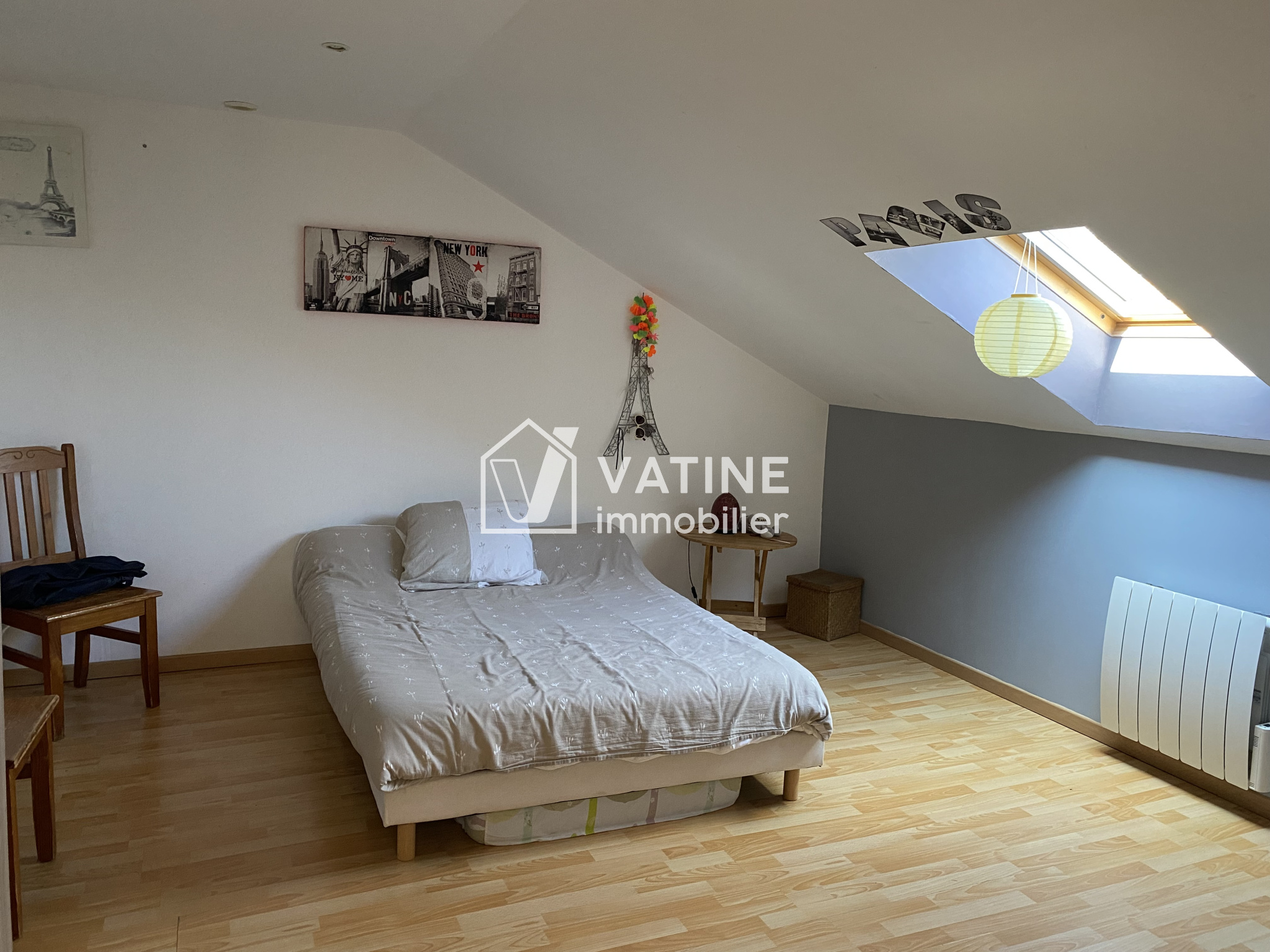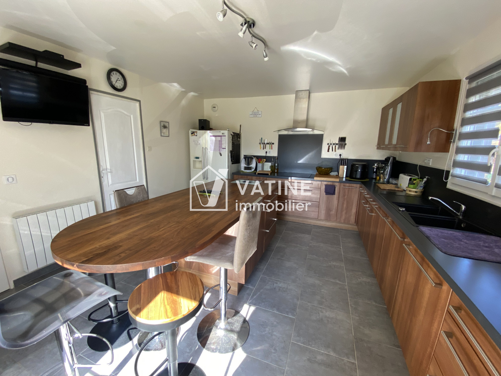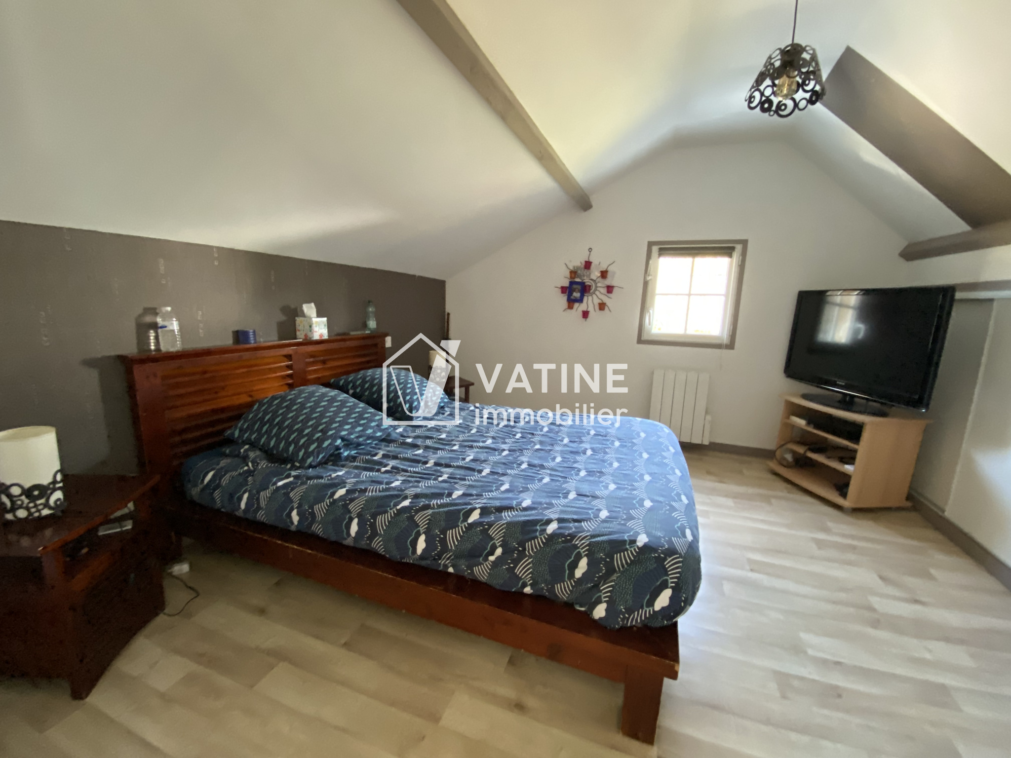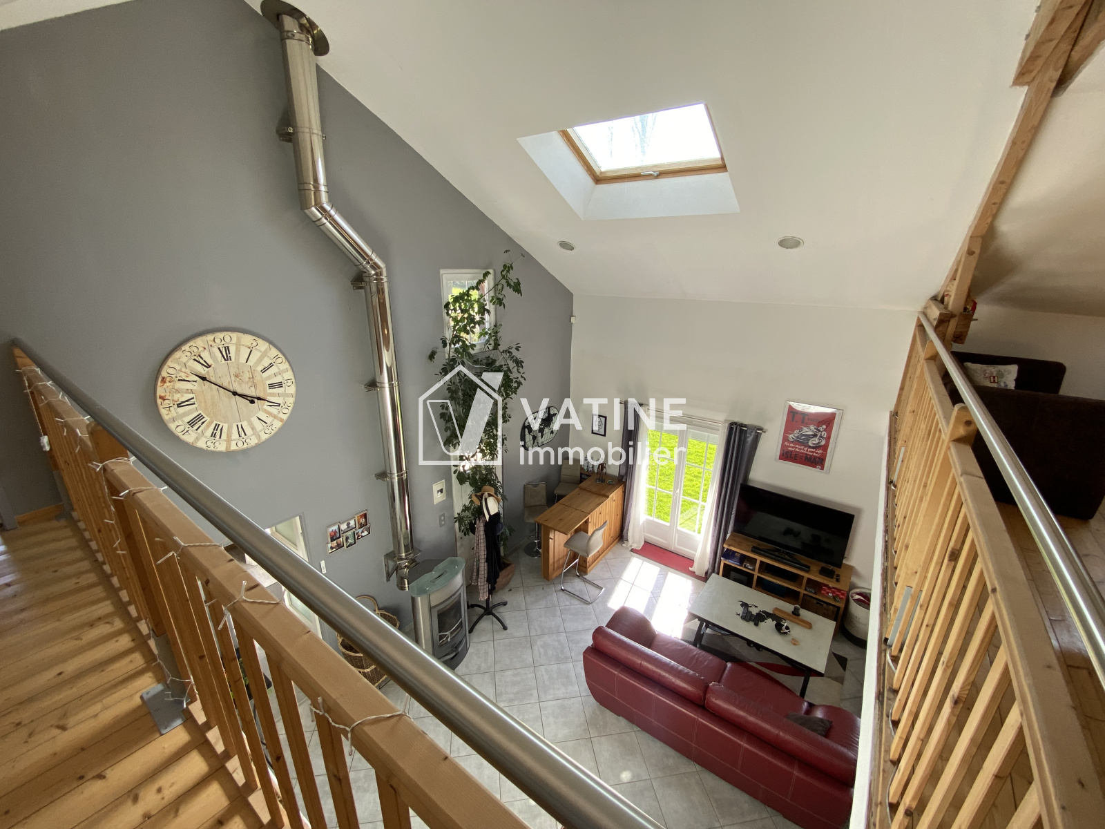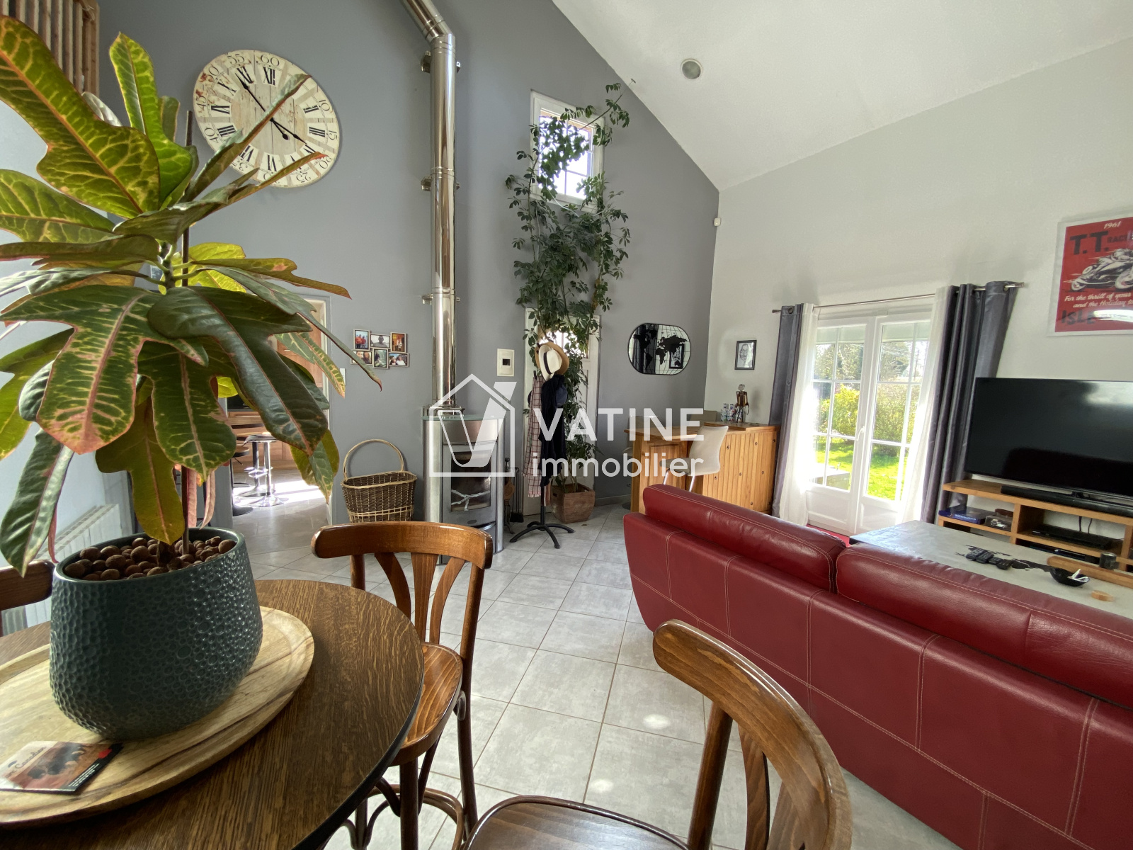 Elle vous offre: entrée avec placards, pièce de vie avec poêle à bois, salon (ou chambre au rez-de-chaussée), cuisine aménagée et équipée, buanderie, salle de bains, WC séparé.